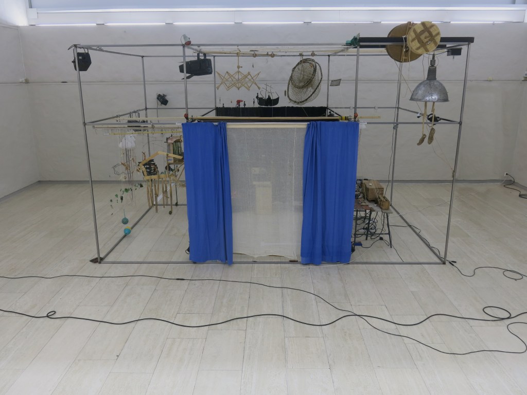 Nausea is part of a series of semi-documentaries, reminiscent of pre-cinematic performances. Analogue techniques are combined to form a three-dimensional illusion. Shadow theatre is taken to other dimensions and cinema is turned into a different experience with these rich and multi-layered shows. The shows are played in a delicate and complex construction consisting of fragile mechanisms, strings, wheels, fishing hooks, bits of card board, etc… The manipulators move carefully around in this fragile universe so as not to break something. All along the performance the audience can undergo the mechanics surrounding the screen, which are made completely visible. The whole show is managed from an on-stage, low-tech control table; strings are pulled, lamps are turned on and off and several objects are animated live. The careful handling of objects and mechanics becomes a show in itself. Spectators can follow the movements of this machine-construction in the same way as one can track film in a Super-8 projector.